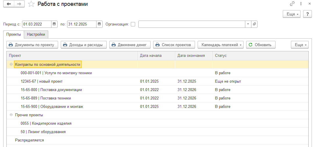 🔹 устанавливать соответствие хозяйственных операций проектам;