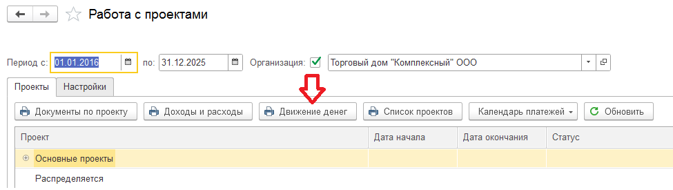 Отчет ДДС по проектам в АРМ "Работа с проектами"