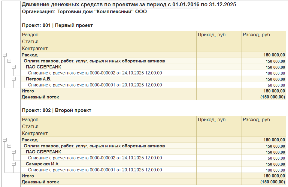 🔹 Доработан отчет ДДС по проектам, вызываемый из АРМ "Работа с проектами". Добавлена группировка "Контрагент".